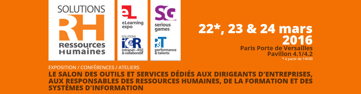 Ces 22, 23 & 24 mars a lieu le salon de Solutions Ressources Humaines. Ce salon est le rassemblement des spécialistes en outils et services dédiés aux Ressources humaines.