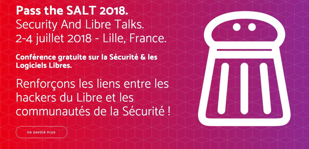 C'est LA conférence anglophone sur la sécurité et les logiciels libres SALT=Security And Libre Talks). #pts18